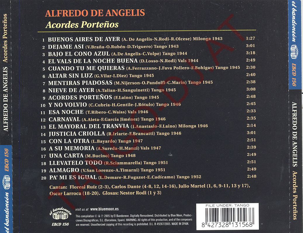 Acordes Porteños – Alfredo De Angelis – El Bandoneón (EBCD-156)