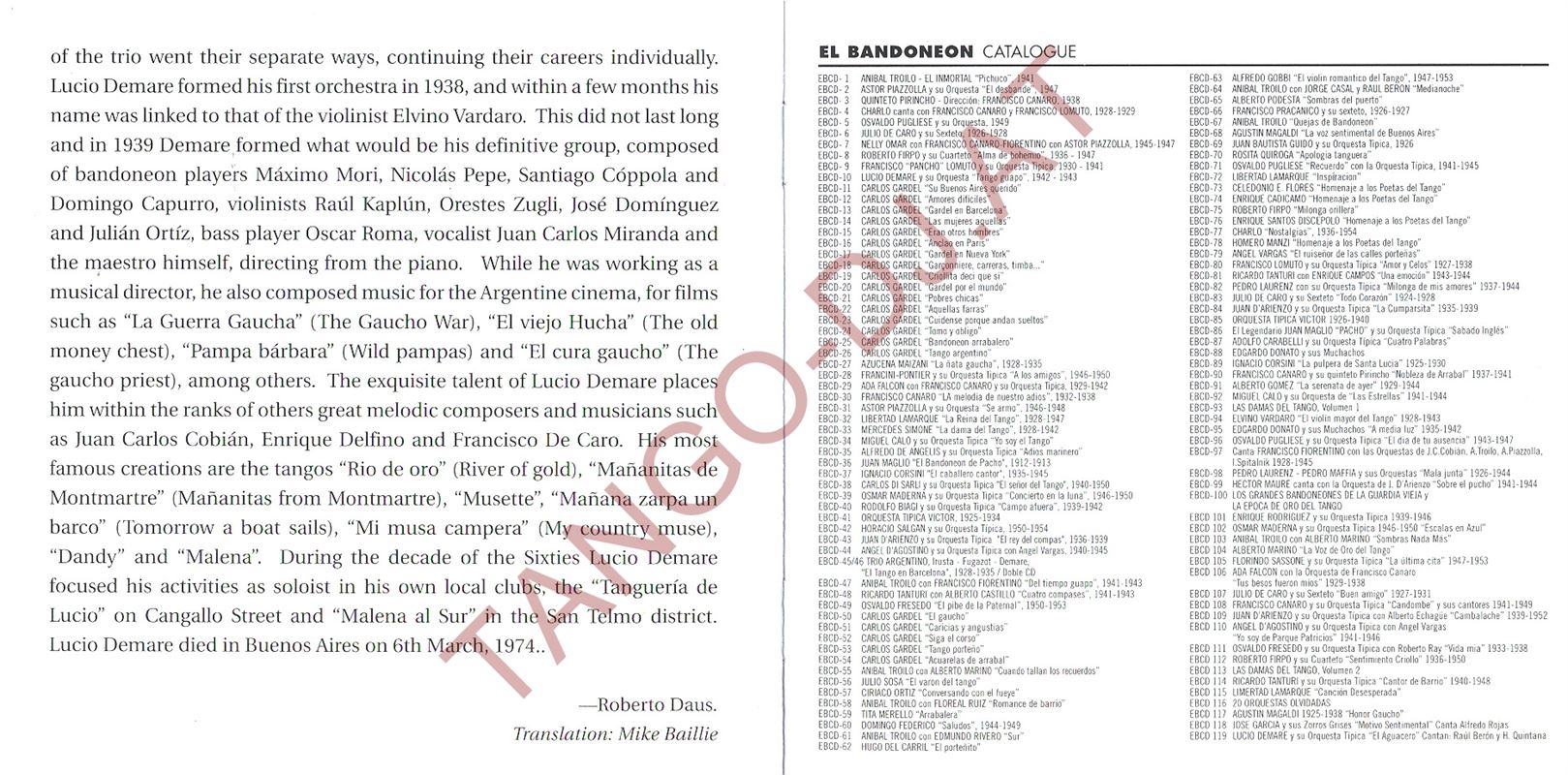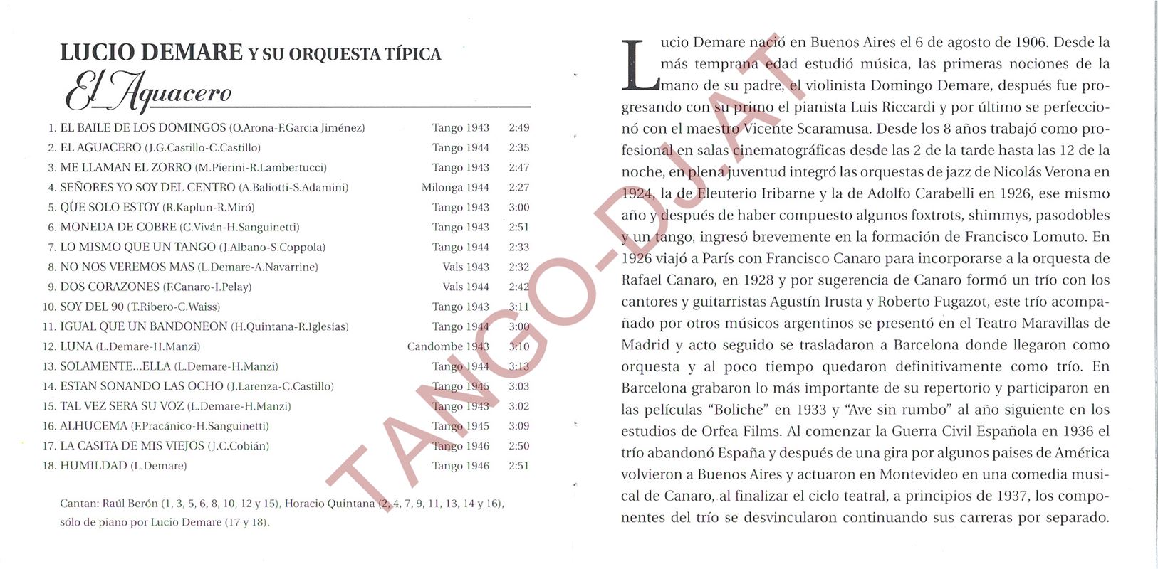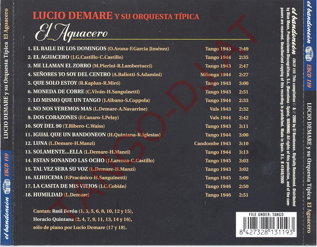 El Aguacero – Lucio Demare y su Orquesta Típica Cantan: Raúl Berón y Horacio Quintana – El Bandoneón (EBCD-119)