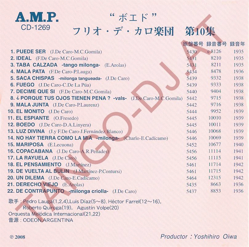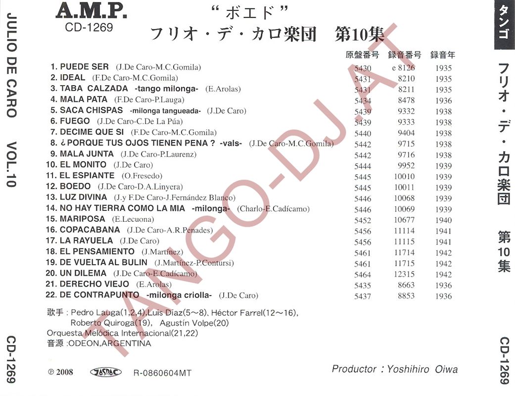 12. Mi queja – Orquesta Julio De Caro – 3:10 – 1930 – Tango
