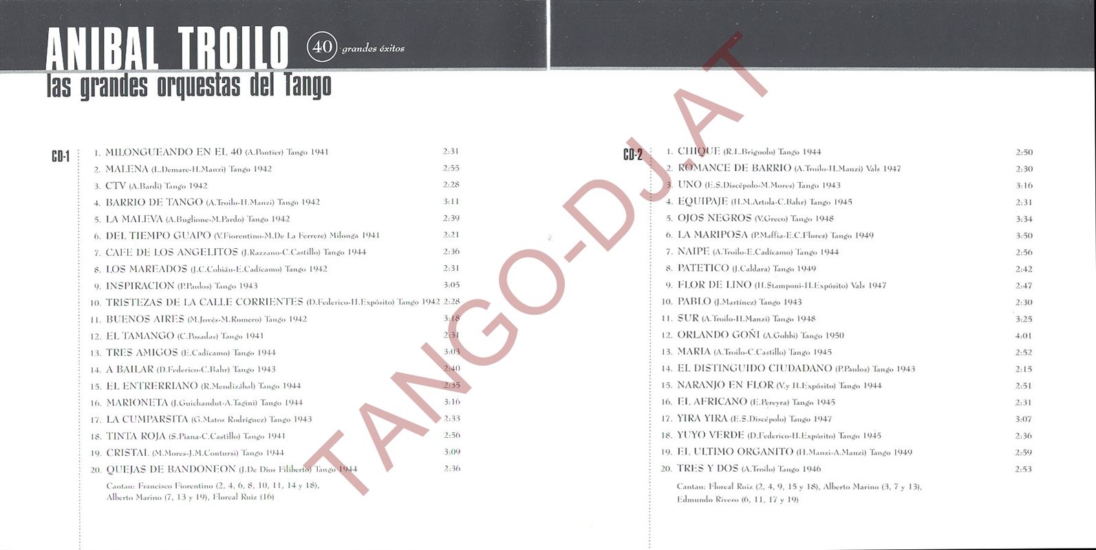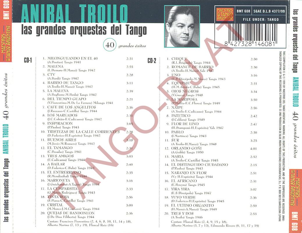 Las Grandes Orquestas Del Tango / 40 Grandes Éxitos – Aníbal Troilo – Maestros del Tango Argentino – 2 CDs – Blue Moon (BMT-608)