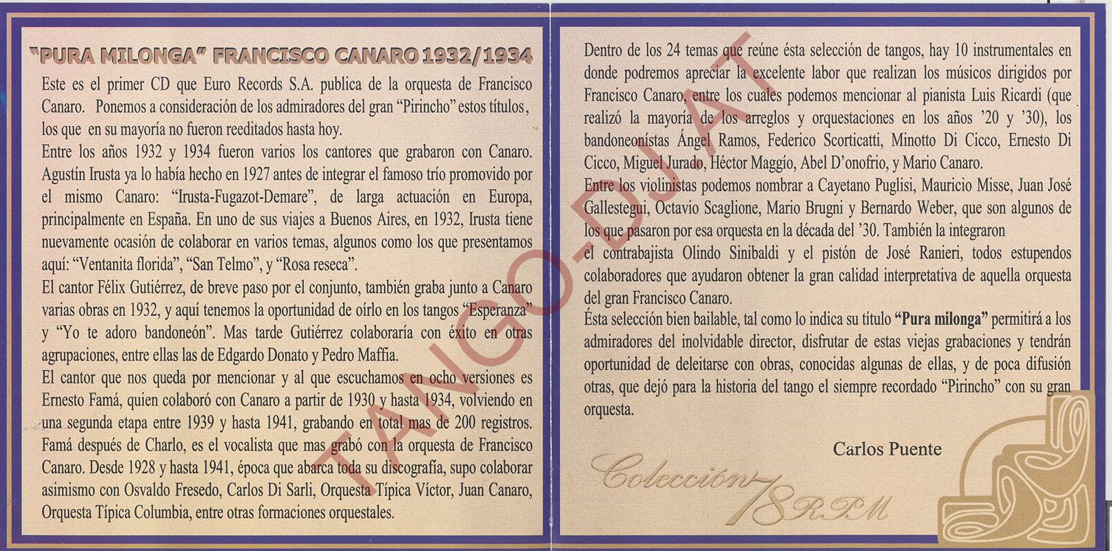 Pura milonga – Francisco Canaro 1932/1934 – Colección 78 RPM (EU-17049)